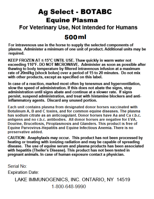 Antigen Select Equine Plasma is used for replacement of fluids and at the discretion of the veterinarian. The plasma is collected from healthy horses recently immunized with the specified select antigen.