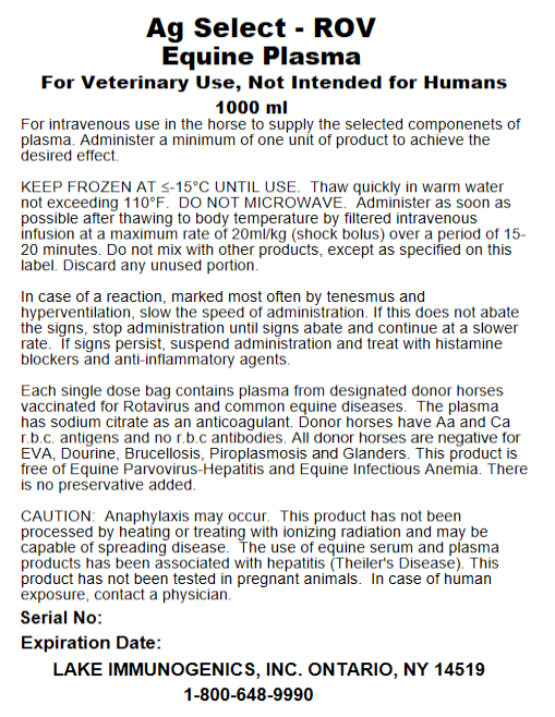 Antigen Select Equine Plasma is used for replacement of fluids and at the discretion of the veterinarian. The plasma is collected from healthy horses recently immunized with a specified select antigen.