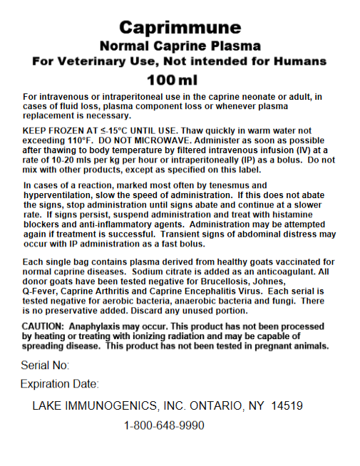 For intravenous use in the caprine neonate or adult, in cases of fluid loss, plasma component loss or whenever plasma replacement is necessary. Each single bag contains plasma derived from healthy goats containing antibodies from vaccination for normal caprine diseases.